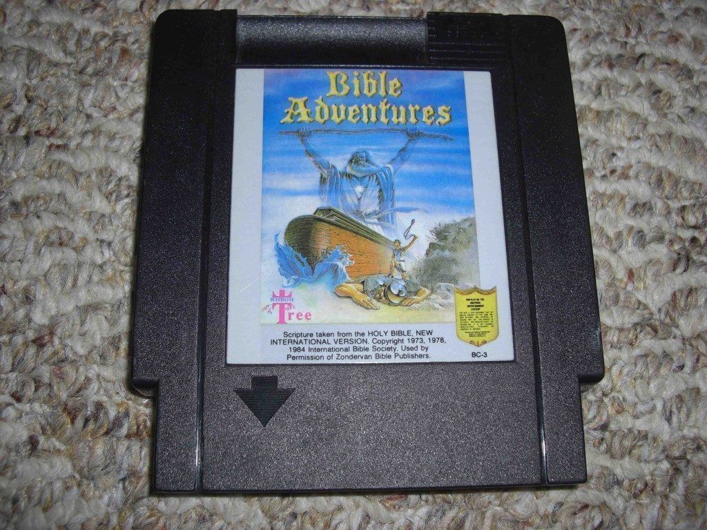 Si amigos, el pedazo de cartucho de la NES llamado Bible Adventures es uno de esos juegos. Informándonos un poco sobre este extraño objeto descubrimos que es un juego en el que adoptamos la forma de Noé y nuestra misión es acarrear animales hasta la famosa arca.