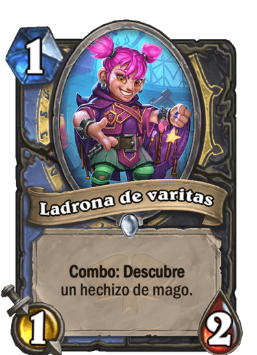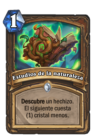 Estos nuevos tipos de hechizos tienen un efecto extra, como este de druida que te descubre un hechizo y te lo abarata. Me parece muy útil combinado con la Vendedora de monturas.