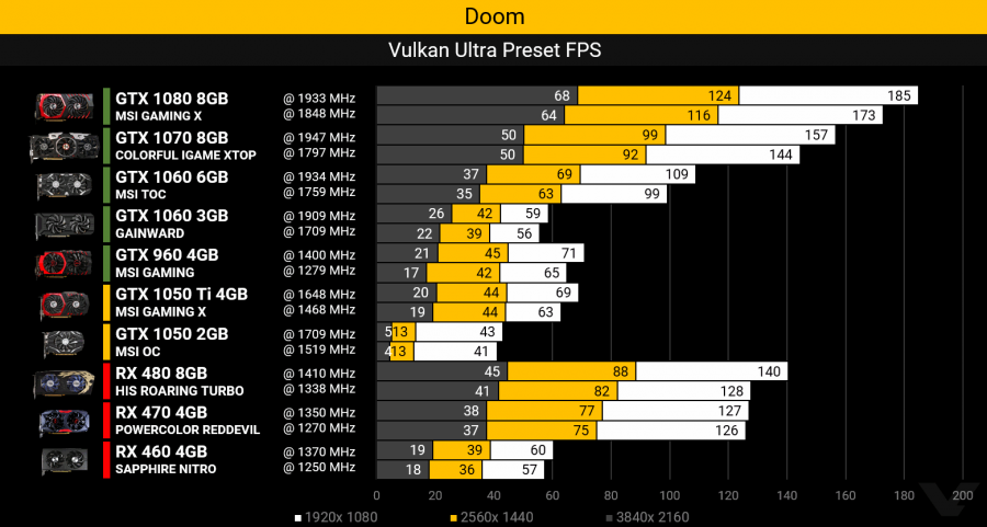 Aquí tenéis una comparativa de los FPS de Doom en todas las tarjetas gráficas actuales de gama alta/media.