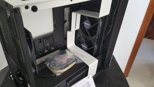 Solo le hemos encontrado una pega, la única bahía de 3,5″ y la posición de esta. Como hemos comentado, con la cantidad de espacio que tenemos NZXT podría haberla situado en otra posición, aunque afease algo el resultado. Han cogido el componente gordito y feo del PC y lo han escondido de la peor forma posible.