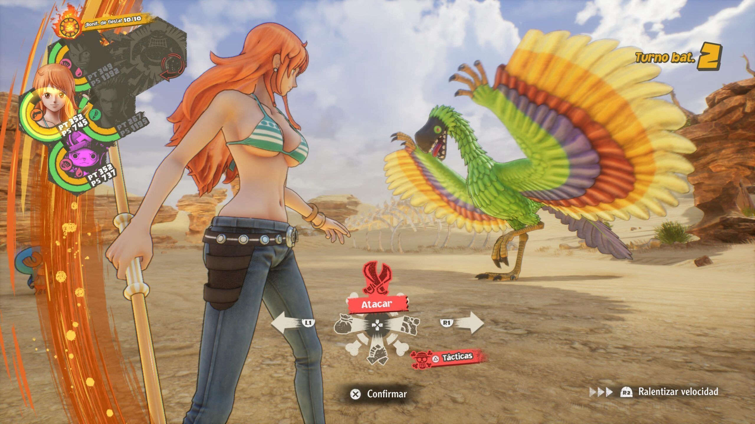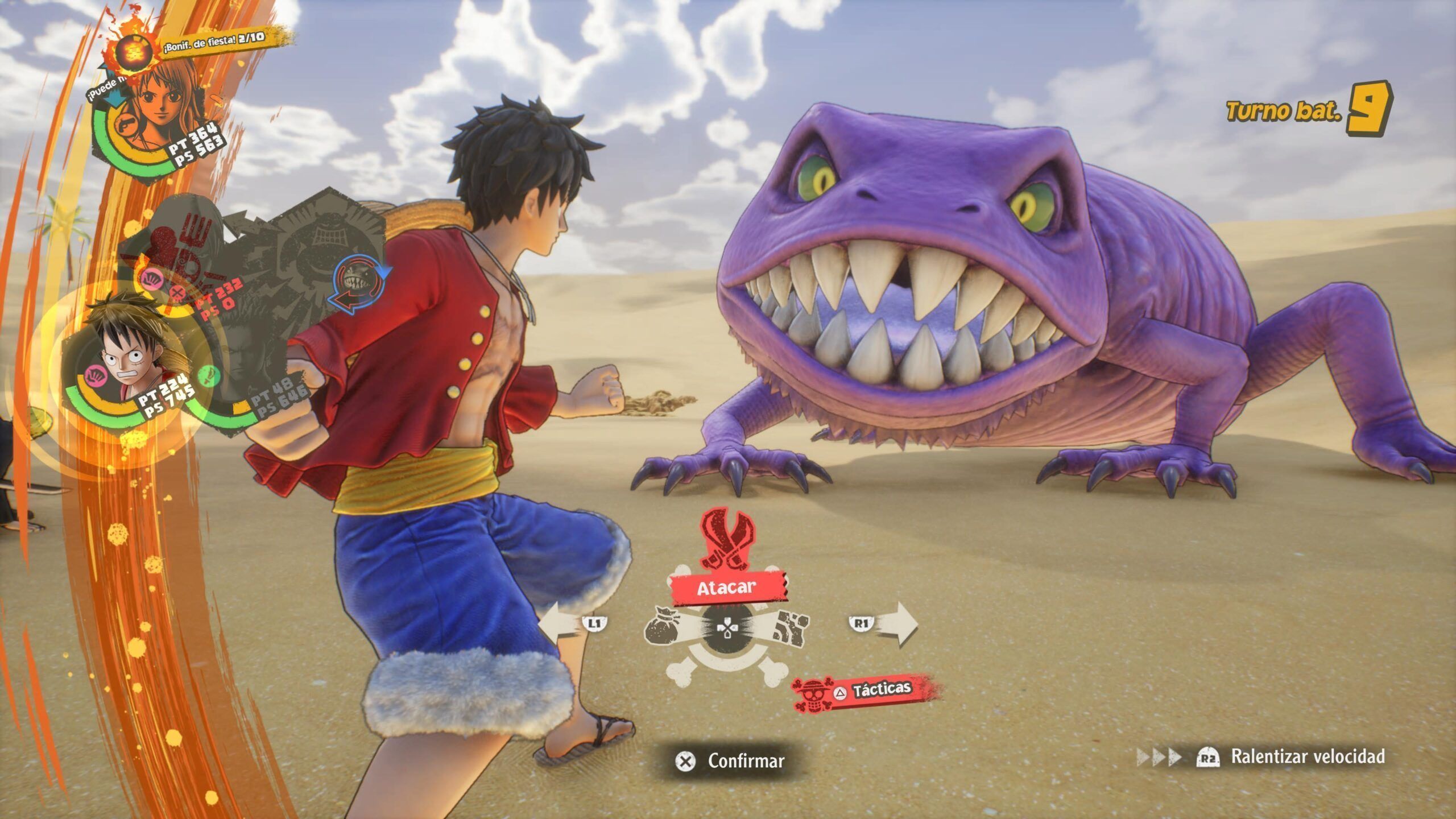 Yo nunca he visto nada de One Piece, pero el juego me llamó la atención por su aspecto de claridad, colorido y de día, porque estoy hasta el gorro de juegos oscuros y serios. Y me gustó mucho pese a los turnos, que soporto en estos casos (ola Yakuza Like a Dragon ke ase), pero he visto jugar al colega un buen rato y al Lokoh Gaming, y la conclusión es que es muy bonito pero demasiado fácil y simple.