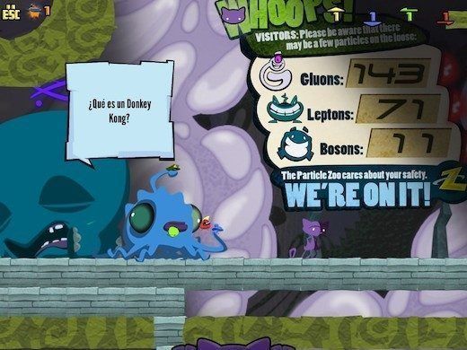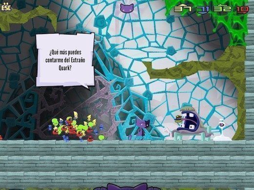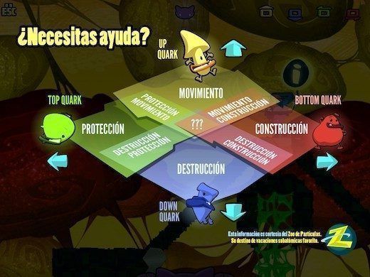 Teniendo el contexto del juego claro, nos adentraremos en el Zoo de partículas pasando por un sencillo tutorial que nos presentará a los elementos diferenciadores de este juego respecto a otros plataformas y nuestros compañeros, los Quarks, y explicará las funciones que tienen los distintos tipos de estas adorables criaturas (Up movimiento, Down destrucción, Top protección y Bottom construcción). Podremos usarlos en grupos de 3, es decir, 3 Ups o 3 Downs, pero también los podemos mezclar para que hagan otras funciones. ¿Qué tal una mezcla de movimiento y construcción? Que entonces tienes una plataforma móvil. Esta opción puede dar mucho juego para resolver los diferentes puzzles que nos iremos encontrando por el camino. La curva de dificultad de los puzzles está bien ajustada, por lo que en los niveles más difíciles nos encontraremos retos que provoquen que nos atasquemos durante unos cuantos minutos. ¿Que faltan otros dos tipos de Quarks? Si eres físico lo habrás notado. Efectivamente, hay dos otros tipos, Charm y Strange, pero estos son más especiales y ya los verás según avance el juego.