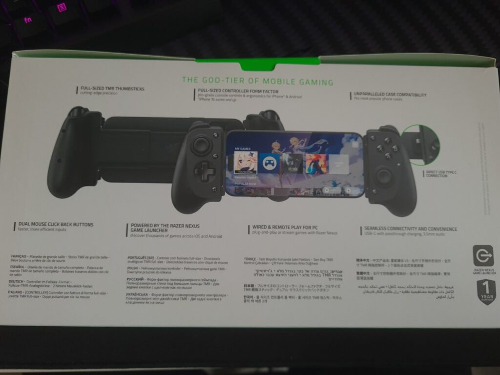 Razer Kishi V3, la caja y los accesorios