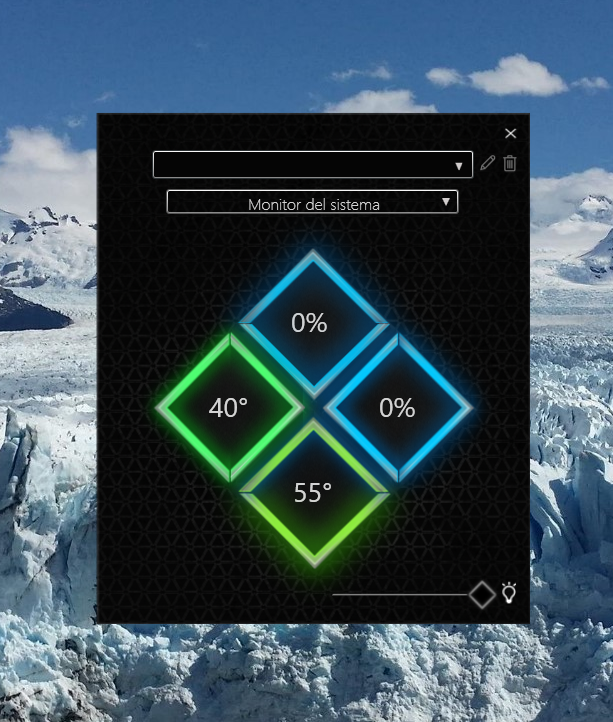 Lo mejor de todo el barebone es la zona frontal, la que tiene los logotipos de Omen X y de Voodoo PC. Está dividida en cuatro partes y tiene leds personalizables. Podemos elegir el color a nuestro antojo, dejarlo con el rojo de la marca o indicar que cambie de color según el rendimiento de nuestro PC. Es realmente impresionante.