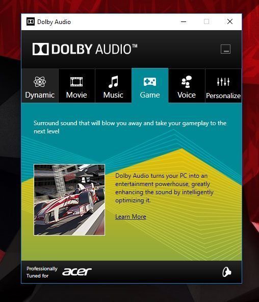 El sistema de Acer para la gestión del Dolby Surround es simple, pero efectivo. No se necesita mucho más.