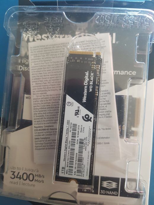 Embalaje sencillo, típico de esta compañía y de Sandisk, de la que son propietarios desde hace aproximadamente 3 años y de los que hablaremos en los datos técnicos del producto. Caja de cartón en blanco y detalles en negro, para indicar que estamos frente a la serie Black de Western Digital. Además de las letras que nos indican el producto, tenemos una foto del SSD M.2 y algunos datos técnicos para que veamos contra qué nos enfrentamos: capacidad, tipo de estructura NAND, garantía y velocidad relativa de lectura, en este caso 3400 MB/s.