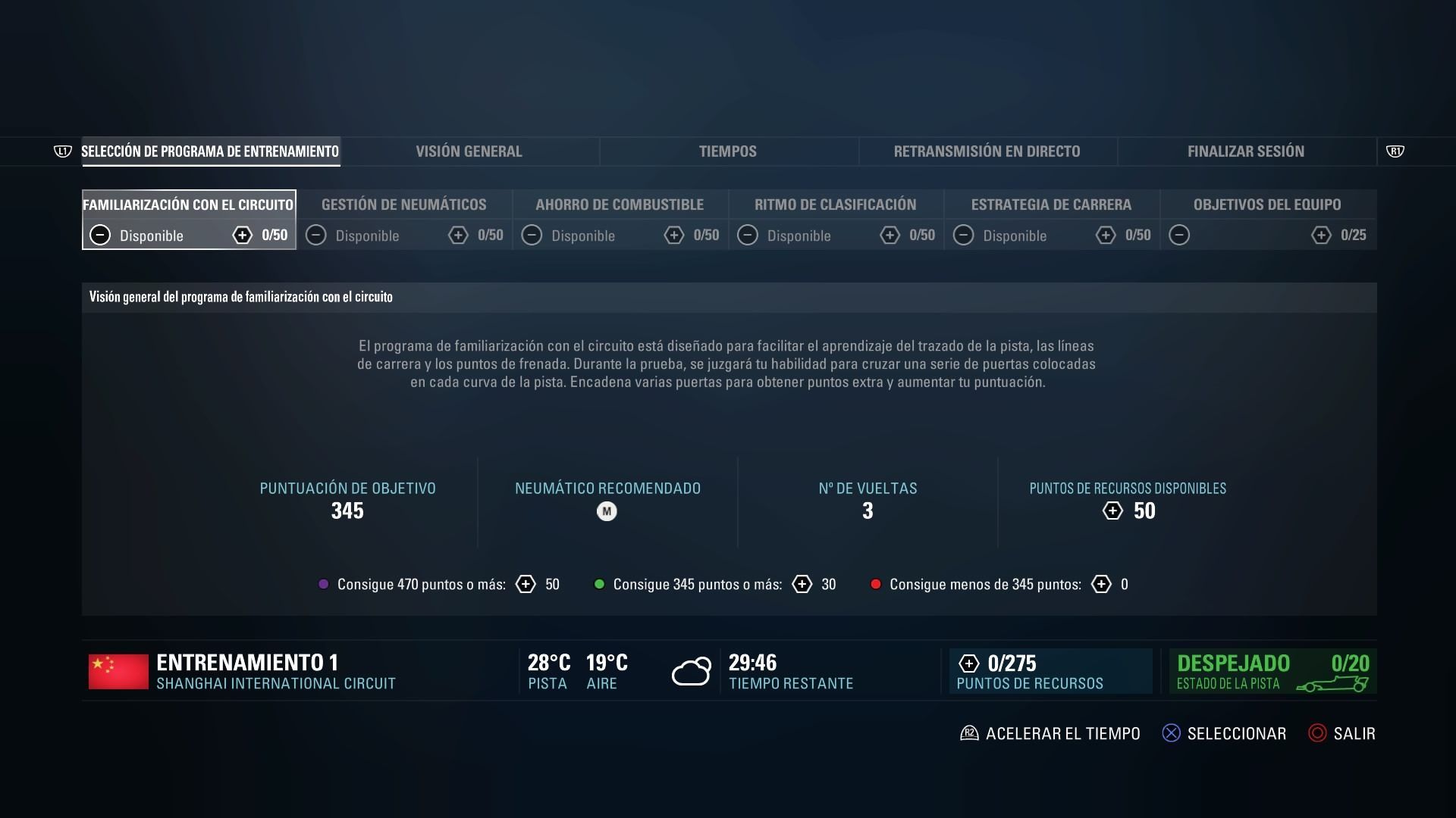 Otra pequeña novedad es que en los entrenamientos libres ya no son tres desafíos a superar: familiarización con el circuito, gestión de neumáticos y ritmo de clasificación. En esta entrega se añaden además, ahorro de combustible y estrategia de carrera. Igual que en la entrega del año pasado, superar estos desafios nos proporciona puntos de mejora para poder desarrollar nuestro coche.