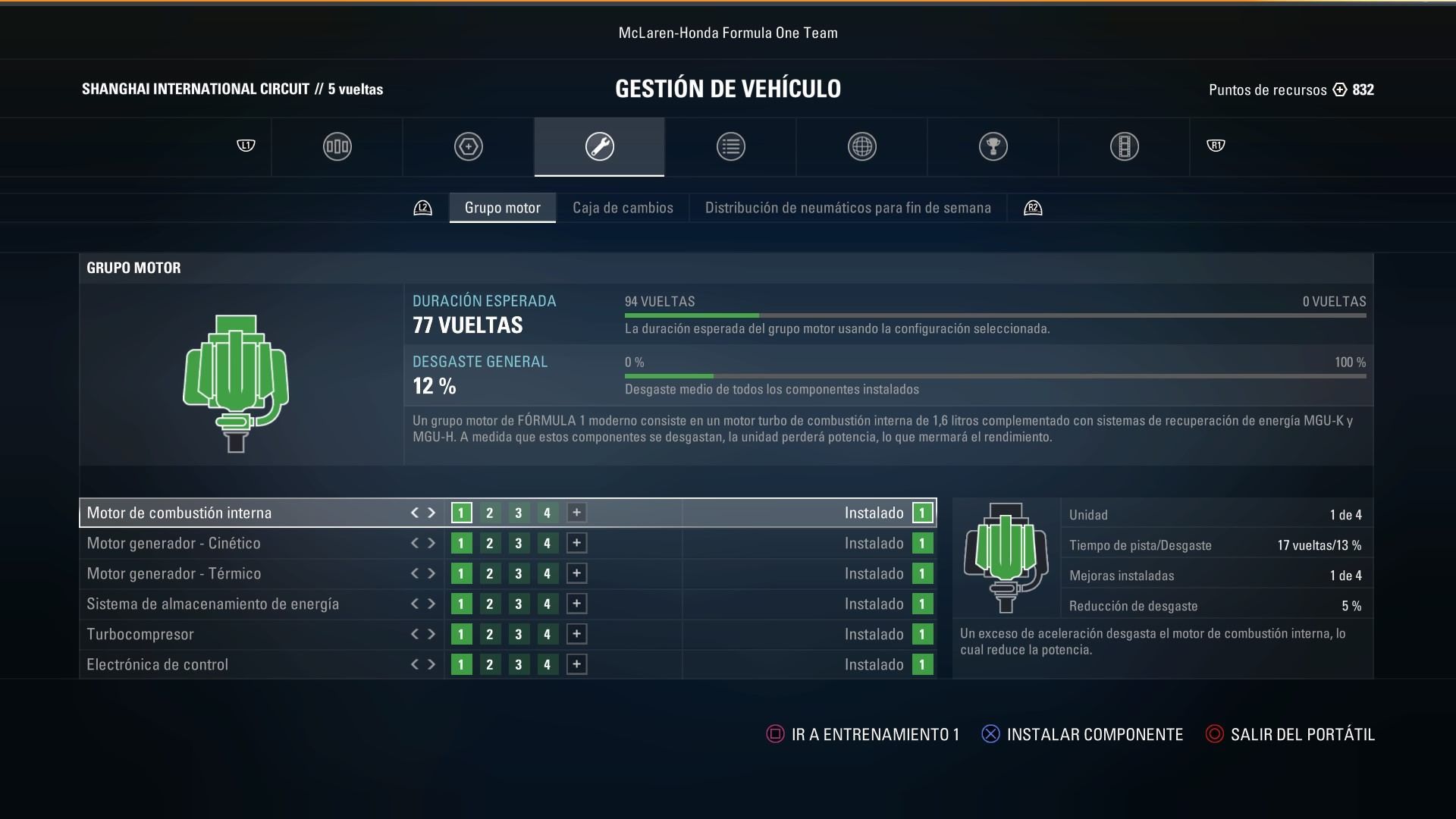 Este año se nos ofrece, como novedad, gestionar las diferentes piezas que forman parte del motor de nuestro monoplaza. F1 2017 posee la licencia oficial de la Fórmula 1, asi que al igual que el campeonato real, contamos con un número de piezas limitado para poder disponer de recambio. Obviamente, las piezas se desgastan, rompen y pierden rendimiento, así que debemos ir con algo más de cuidado en esta ocasión si no queremos quedarnos tirados en medio de un Gran Premio. Si consumimos más recambios de los permitidos, tendremos una penalización en parrilla, exactamente igual que Fernando en McLaren.