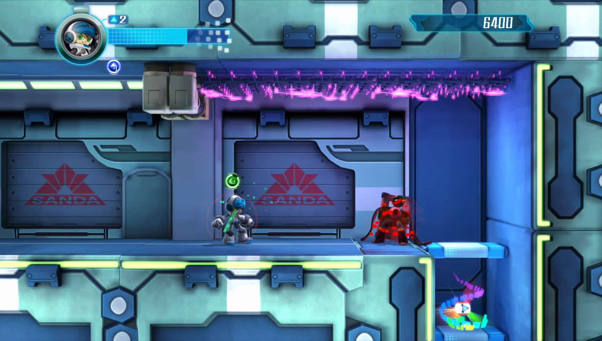 Y los poderes son la gran diferencia que encontramos respecto a otros plataformas de acción que hemos jugado últimamente. Unas habilidades que vamos a robar de los enemigos moribundos. Lo explicamos: en el momento en el que ataquemos a nuestros rivales veremos que se quedan atontados y les rodea un aura de color. Esa será nuestra oportunidad de robar el poder especial de ese esbirro y, dependiendo del color del aura en cuestión, ganaremos una habilidad temporal. Cada vez que encadenemos una baja de esta forma añadiremos un punto de combo que nos servirá para multiplicar la puntuación. Ese es el único sentido que tiene a la larga Mighty No. 9, intentar conseguir una puntuación alta a base de encadenar muertes de enemigos absorbiendo su daño. Divertido si eres un speedrunner, pero aburrido si eres un jugador estándar.