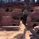 Después se irán alternando zonas a lo Uncharted, escalando inmensos muros con alguna pequeña trampa, con otras de exploración pero más delimitadas que en los otros episodios. En ellas iremos resolviendo los diferentes problemas que nos topemos y hablaremos con los personajes para cultivar nuestra relación con estos y ayudarles si fuera menester. Tampoco faltarán varios puzles más específicos y complejos, que harán que les demos más de una vuelta para desentrañarlos. Habrá otros que nos obligarán a afinar nuestro oído y capacidad musical, pero ninguno con una dificultad excesiva. O algún momento más movidito en el que tendremos que lucirnos con nuestro manejo del arco en primera persona, como si de un shooter cualquiera se tratara.
