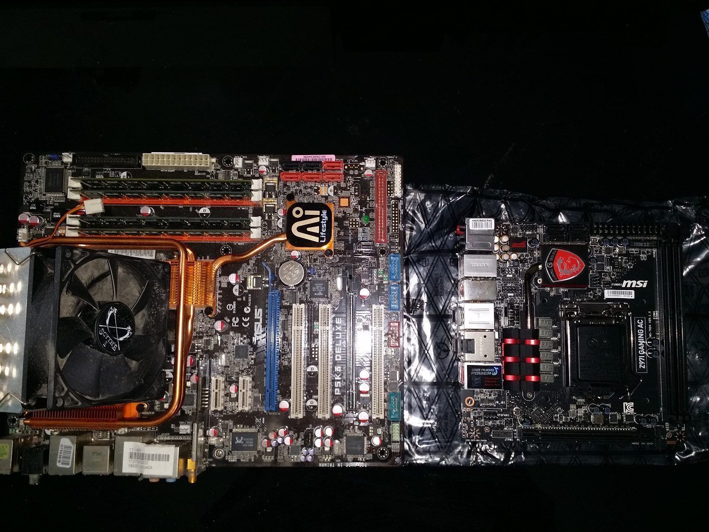 Esta afirmación es más rotunda que nunca en cuanto tenemos la caja de la placa base MSI Z97i Gaming AC en nuestras manos. No es que sea pequeña, es muy pequeña en comparación con los componentes hardware que estamos acostumbrados a usar, pero ya veremos que el tamaño no limita la potencia. En la siguiente foto tenéis una comparativa de tamaños frente a una placa base ATX Asus P5K3 Deluxe.