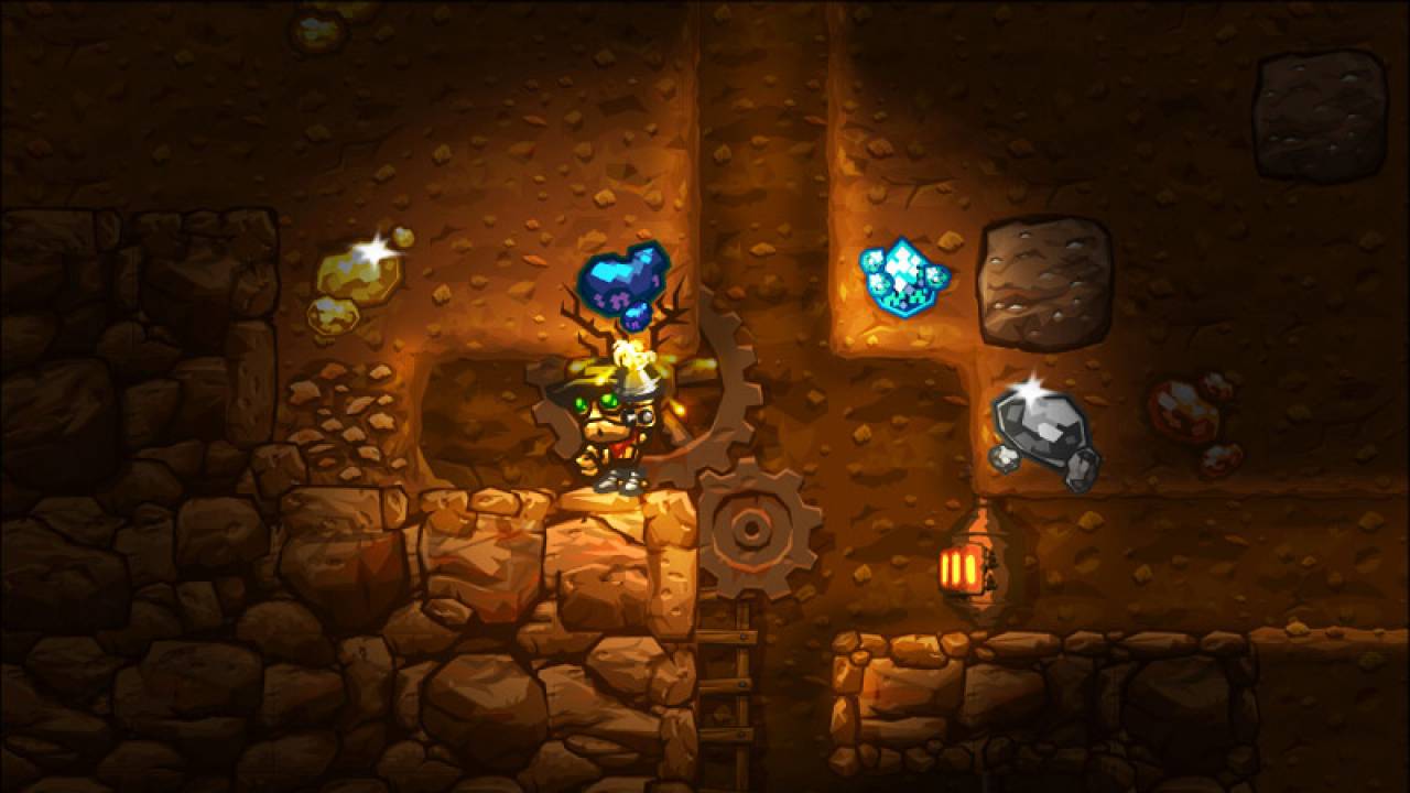 Así pues, recibiremos un pico cual Link recibió su espada, para acto seguido despedir a un pueblo que irá creciendo muy lenta y ligeramente motivado por nuestros avances como mineros. En los primeros compases del juego, nos preguntaremos acerca de qué narices estamos haciendo y por qué Rusty no se aleja del subsuelo, pues por cada metro que nos sumergimos entre tanta arena vamos comprobando que el peligro va aumentando gradualmente. Ya no hay marcha atrás. El juego nos ha atrapado y no nos permitirá soltarlo hasta que veamos los créditos finales.