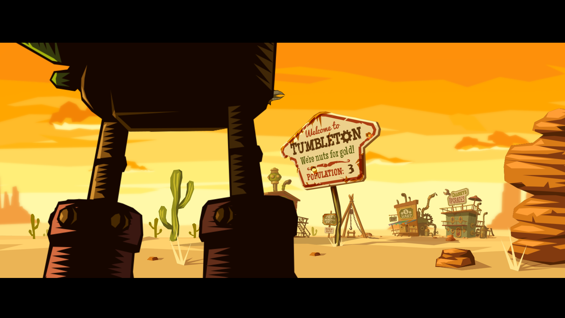 Olvidaos de mundos, niveles, ítems temporales y poderes rotos con los que ver los créditos finales casi sin esfuerzo. Aquí todo depende de ti y tu inteligencia; de cómo suministres tu dinero y cómo o en qué quieras usarlo. Pongámonos en situación. Sin desvelar nada de la historia, decir que Rusty llegará al pueblo, Tumbletown, donde tiene lugar nuestra pericia. La sensación de vacío, pesadumbre y zozobra de un desierto en todo su esplendor. Necesitamos agua y antorchas; necesitamos saber qué pasa. Por contrapartida, además de agua, necesitamos la luz del sol cada cierto tiempo para sobrevivir debido a la construcción física de Rusty, nuestro compañero de fatigas en SteamWorld Dig.