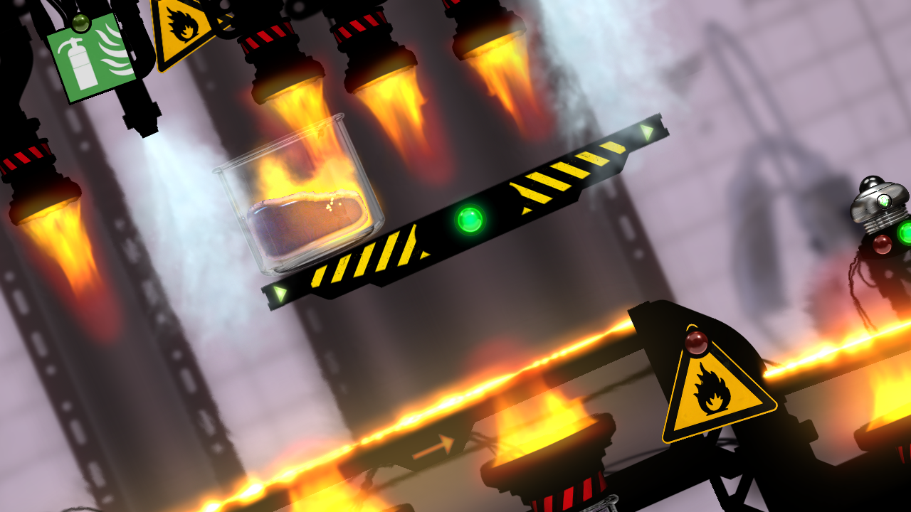 Para completar un nivel deberemos superar todas estas dificultades intentando perder el menor líquido posible, para marcarnos el líquido mínimo con el que deberemos superar la fase contaremos con una probeta en la parte superior izquierda de la pantalla que contará con una delgada línea roja. Si llegamos a rebasarla habremos perdido la posibilidad de completar el nivel y seguir en el juego.