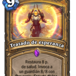 El héroe de paladín también recibe una serie de cartas bastante acorde con su condición de impartir justicia. Se trata de unos hechizos llamados «tratados» bastante decentes, que además van acompañados con textos en algún esbirro para abaratar su coste. Con esto pretenden otorgar al paladín de más herramientas de control del juego, algo que hace mucho había perdido. Y por si quedaba alguna duda vienen acompañadas de una vieja conocida del juego.