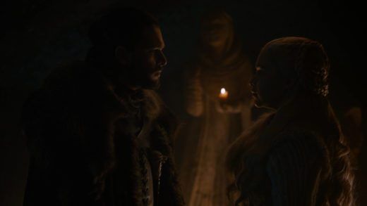 Y de Daenerys va también la cosa, porque en este episodio podemos ver más acerca de la situación en que se encuentra la ya no tan futura reina de Poniente. La revelación a Jon por parte de Sam en el capítulo previo deja a este en una posición realmente delicada con Daenerys, y le vemos distante con ella a lo largo de todo el episodio salvo en los momentos finales, de los que hablaremos más adelante en estas líneas. Además, los intentos de Daenerys por acercarse al Norte y a Sansa en particular fracasan en una escena realmente importante en la que parece que ambas van a llegar a entenderse hasta que Sansa, determinada como es ella, advierte a Daenerys de que el Norte no se va a postrar ante nadie. Todo esto, unido a la desconfianza que siente Daenerys ante la resolución de Tyrion que podría haber ido a más de no ser frenada por Jorah, coloca a Daenerys en una posición peligrosa para ella misma y para sus aliados.