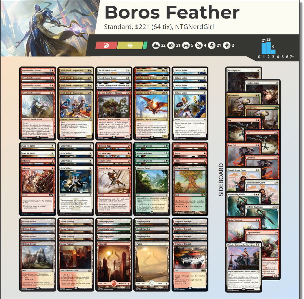 El deck Faether Boros es un candidato perfecto para aprovechar los instants reciclados de tu cementario y dar más potencia de ataque a tus criaturas con la habilidad del Héroe de los juegos.