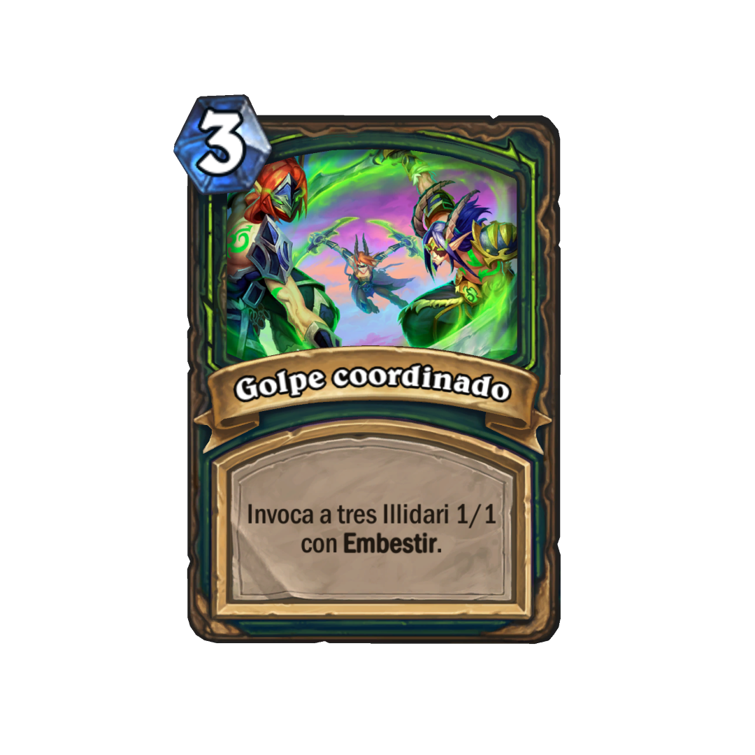 Illidan Tempestira es el héroe que protagoniza la nueva clase. Se trata de una clase cazadora de demonios (Demon´s Hunter). Su poder de héroe nos otorga un punto de ataque y otra cosa también nueva el coste del poder de héroe, que por primera vez será de un cristal de maná. Como todo héroe tiene un conjunto de cartas básicas que encontraremos en los sobres básicos. No tendremos cartas de anteriores expansiones para este héroe, pero para ponerse a la altura del resto de héroes, en las siguientes expansiones del año del Fenix recibirá más cartas que el resto de clases. Por supuesto, este héroe es gratis para todos, pero será necesario realizar un prólogo, a modo aventura, para conseguirlo. Veamos algunas cartas de la colección básica de este nuevo héroe.
