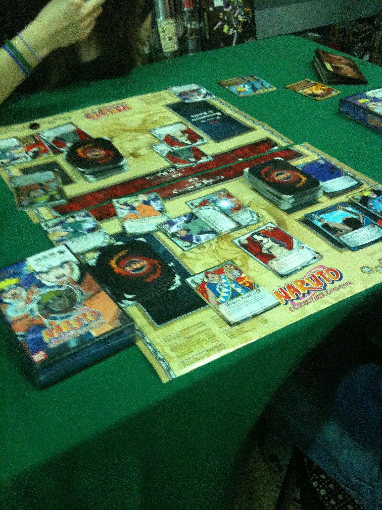 Este fin de semana asistimos a una demostración del juego de cartas de la saga anime de Naruto. El emblemático local Kaburi de Barcelona fue escenario de encarnizadas batallas ninja sobre la mesa, pues el sistema de juego da la libertad a los jugadores de pensar más de una posibilidad para derrotar al oponente.