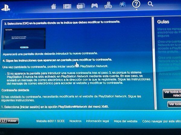 Hay algunas dudas con el primer paso de restablecer el password de PSN, sobre todo por el dato de «Vuestro password solo puede ser cambiado en vuestra propia PS3 (o en el sistema en el cual vuestra cuenta de PSN fue activada)». Esto podría significar que sólo en la consola donde se creó el usuario se puede restablecer y como muchos sabréis existen muchos usuarios que han cambiado de consola. Para aclarar esto existe una guía que podéis acceder desde vuestra PS3 con el firmware 3.61. Está en el RSS, justo debajo de el icono de iniciar sesión en el XMB y os la detallo después del salto.