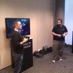 Han pasado diez años desde aquel lanzamiento, y el Jefe Maestro, unos de los estandartes de Microsoft, necesita ser renovado, y aquí es donde aparece este Halo: Combat Evolved Anniversary. En la presentación que nos preparó Microsoft pudimos contar con la presencia de parte del equipo de desarrollo de 343 Industries, exactamente con Dennis Ries y Chad Amstrong. En cuanto comenzaron a hablar, todos nos dimos cuenta que eran el tipo de gente que aman lo que hacen, y por lo tanto aman todo el universo de Halo. Verles comentar todos los detalles del juego con una sonrisa de oreja a oreja, ver como a la vez que van desgranando las mejoras que han implementado al título, a la vez que disparan en la cabeza a los enemigos en una partida, no tiene precio. Sabían de sobra por dónde aparecían estos enemigos, como actuaban y sus puntos débiles, y eso denota su gran labor en la creación del título.