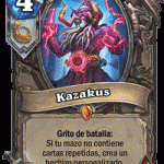 Quedaros con la carta de Kazakus y su grito de batalla porque creo es de lo más interesante. Si no tienes cartas duplicadas en tu mazo te ofrece la posibilidad de crear un hechizo. Parece algo anecdótico pero a mi juicio se pueden hacer muchas cosas. Mi duda es si hasta donde llega el abanico de posibilidades, supongo que estará muy limitado porque el destrozo que se podría realizar con esto seria muy fuerte. Aquí tenéis un ejemplo de como funciona.