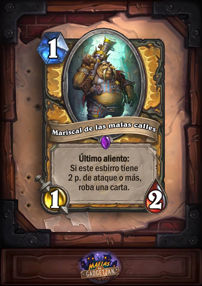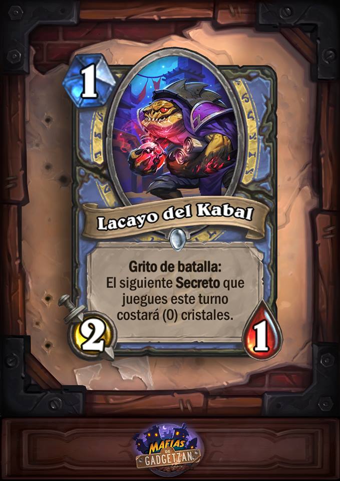 Estamos a pocos de días de conocer la fecha concreta en que se lanzará «Mafias de Gadgetzan», la nueva expansión de HearthStone Heroes Of Warcraft, que aportará a la colección de cartas un total de 132 cartas. Por supuesto no todas ellas van a ser de un gran uso en el metagame que, día si y día también, sufre variaciones y cambios en función a los arquetipos de los mazos. Es por eso que quiero comentar algunas de ellas con un par de frases y me gustaría compartir o debatir con vosotros estas cartas que a mi juicio y bajo mi opinión me parecen muy interesantes. También quiero decir por adelantado que yo también sigo a muchos jugadores de juego, tanto profesionales como no, y mis valoraciones pueden o no diferir de las ya comentadas por ellos y seguramente es de ellos que aprendo a sacarlas. No quiero empezar sin antes decir que os invito a que si hay alguna carta que no está en esta entrada y creéis merece ser comentada me lo dejáis en los comentarios y o bien la añado a esta entrada o bien la introduzco en una nueva antes del lanzamiento de la expansión. Vamos allá.
