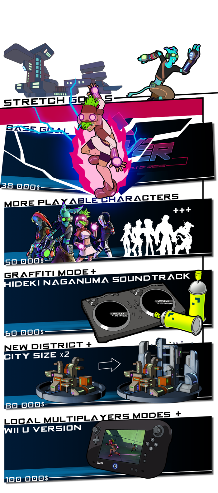 Hace unos días os contábamos que Hover: Revolt of Gamers llegaba a KickStarter tras superar ampliamente el Steam Greenlight. La mezcla de Jet Set Radio y Mirror’s Edge necesitaba 38.000 dólares para ver la luz y en tan solo tres días ya ha superado ampliamente esta cifra. ¿Todavía no lo conoces?