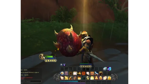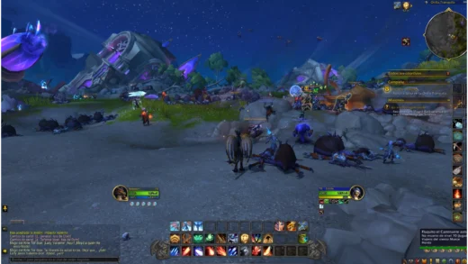 Para los que no conozcáis muy bien World of Warcraft, tu personaje, partiendo de una raza y clase elegidas, va a ir completando misiones que apoyan a la historia troncal o no, pero que suelen tratar retazos de lo que ocurre en el mundo. Para esto, tienes una barra de habilidades en las que puedes poner hechizos, comida, monturas, profesiones, etcétera. Este tipo de barras (especialmente si van del 1 al 0 más dos extra) es un estándar que popularizó en su momento WoW y que se extendió como una mala gripe a todos los MMOs y algún que otro RPG.