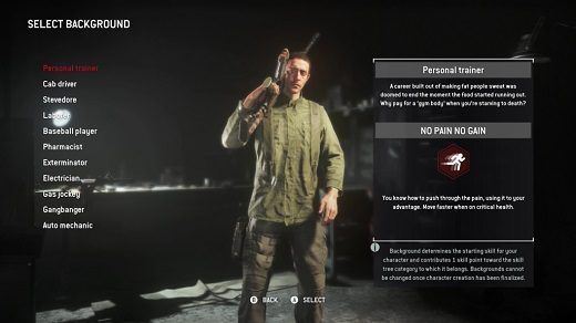 Debo admitir que durante los primeros 10 o 15 minutos de la beta me sentí bastante motivado con el juego. La creación de nuestro personaje tiene las opciones más extrañas que uno pueda imaginar en un FPS. Taxista, Entrenador personal, Mecánico, electricista, entre otros, forman parte de un abanico de posibilidades que le otorgan una personalidad propia al juego, ya que fuera quedan los tipos soldados y mercenarios.