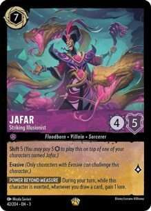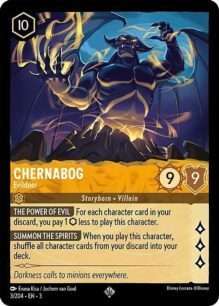 Pero no solo de heroes vive Lorcana, nuevos villanos hacen acto de presencia como Ursula Deceiver of all, Jafar Striking Illusionist y Chernabog Evildor así que estad atentos a sus habilidades pues pueden daros mas que un quebradero de cabeza si se combinan bien.