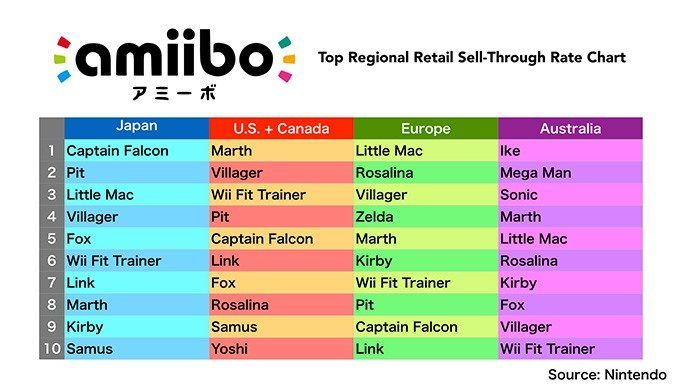 Por último, os dejamos con el ranking de figuras amiibo en Europa, Japón, Australia y Norte América.