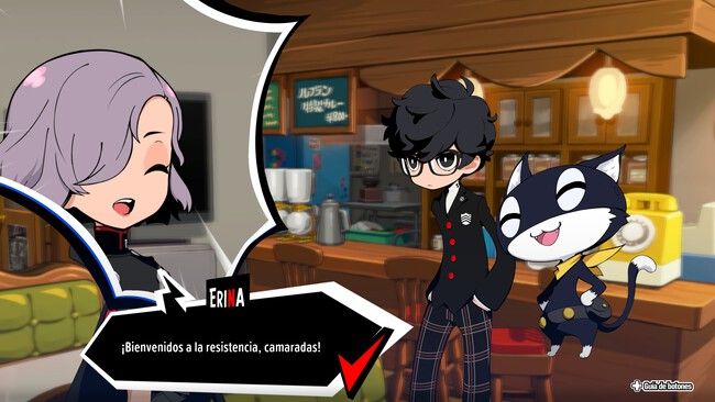 Como mencionaba, es evidente que es un juego para fans de Persona 5 y Atlus lo da por hecho. Aquí nuestros nuestros protagonistas ya han creado lazos entre ellos, por lo que interactúan entre sí como tal y nada de su contexto se deja caer. De hecho, y a causa de esto, lo cierto es que Persona 5 Tactica es un juego muy directo, ya que prácticamente todo se centra en los combates. O sea, aquí no hay nada de la parte “aventura social” del original. Lo único que puede recordar a estos momentos son las reuniones en el Leblanc donde habrán diálogos previos al combate y que nos sirven de paso para conseguir puntos canjeables.