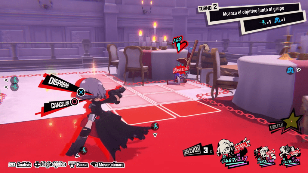 Además de la posibilidad de conseguir ciertas ventajas si alguno de nuestros personajes pasa de turno sin ejecutar nada, otra cosa que me ha gustado de Persona 5 Tactica es el llamado “1 más”, lo que es básicamente conseguir extender los turnos si conseguimos hacer daño al enemigo cuando esté fuera de cobertura. Ojo, porque esto también lo pueden aprovechar los enemigos. De hecho la IA, si ve que nuestros personajes están indefensos, lo intentarán aprovechar a la mínima.