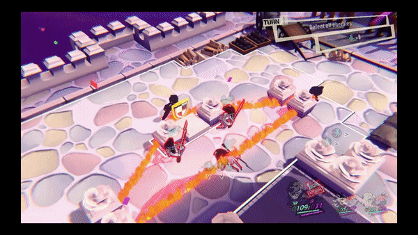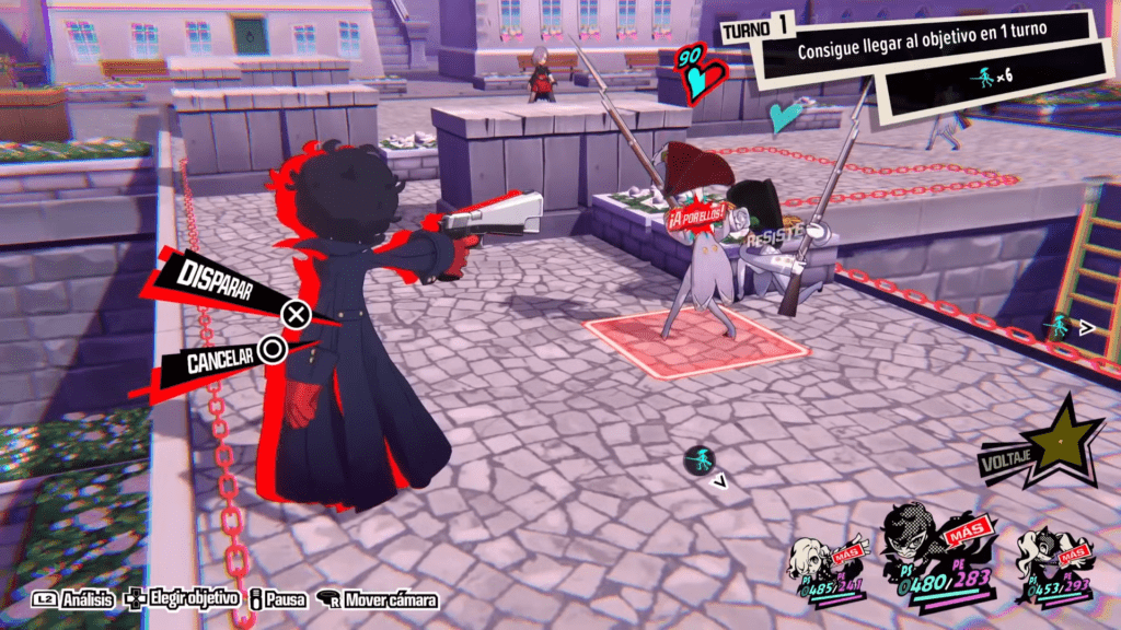Además de la posibilidad de conseguir ciertas ventajas si alguno de nuestros personajes pasa de turno sin ejecutar nada, otra cosa que me ha gustado de Persona 5 Tactica es el llamado “1 más”, lo que es básicamente conseguir extender los turnos si conseguimos hacer daño al enemigo cuando esté fuera de cobertura. Ojo, porque esto también lo pueden aprovechar los enemigos. De hecho la IA, si ve que nuestros personajes están indefensos, lo intentarán aprovechar a la mínima.
