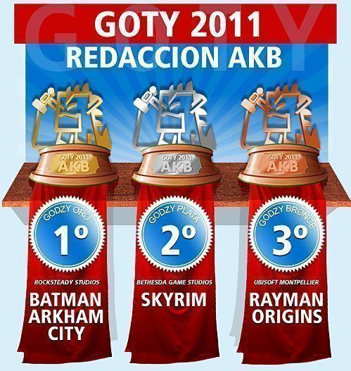 Por desgracia, solo he podido disfrutar del Batman Arkham City, al que estoy jugando ahora y cada vez me impresiona más. Lo que si me sorprende es la posición de Rayman Origins, ya que sabia que era toda una sorpresa pero no me esperaba que hasta ese punto. Skyrim tenía que estar en el podium sí o sí, ojala pueda embarcarme pronto en su mundo.