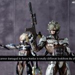 Las principales diferencias entre ambas figuras son el cambio del negro por un blanco desgastado y maltratado por el combate en la armadura y por un nuevo set de armas – la Katana, icono de Metal Gear Rising, se sustituye por un fusil y un lanzamisiles.