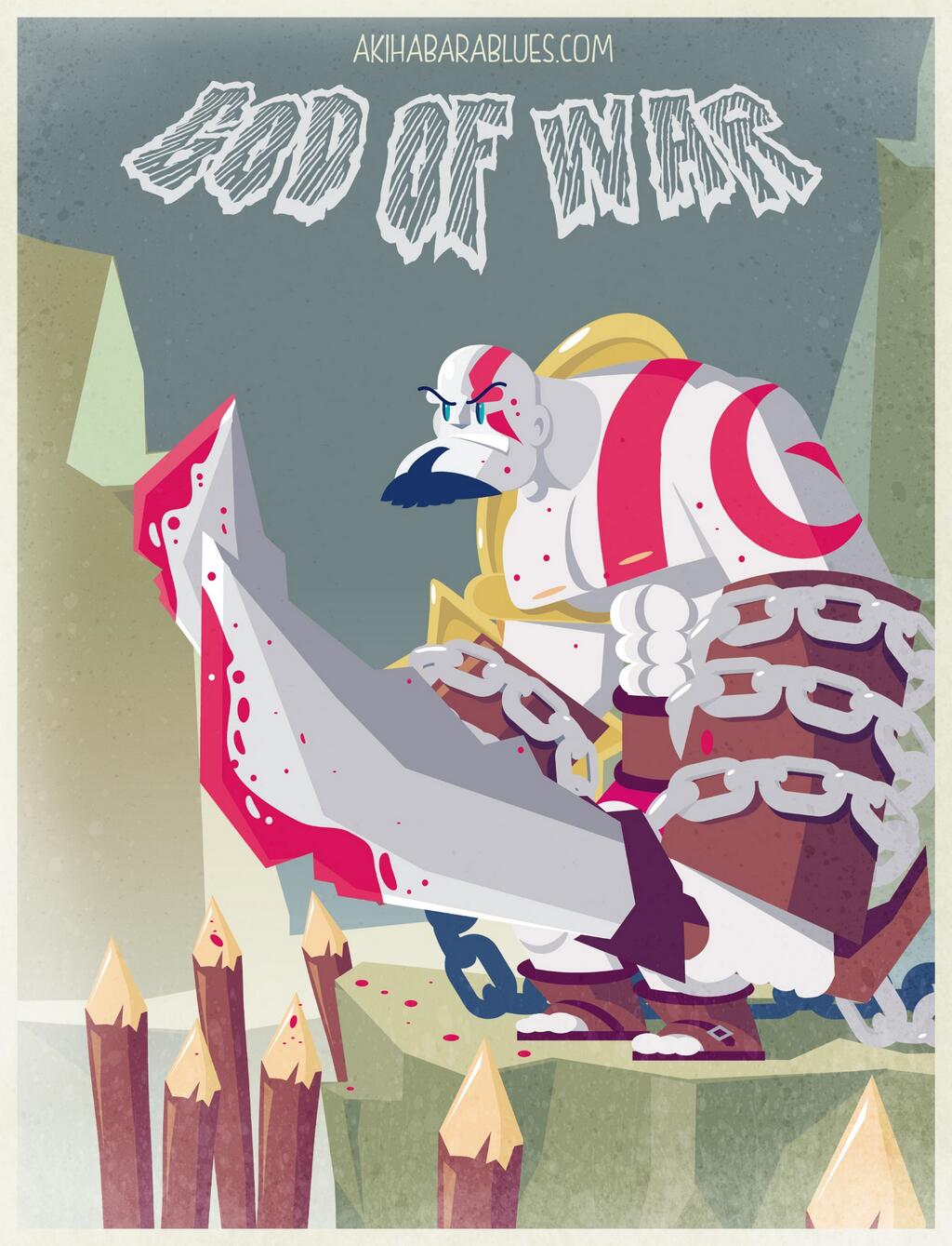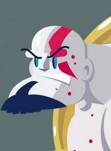 El Maestro Roswell, que se está tomando un más que merecido descanso, nos envía desde el Exilio de los Justos esta interpretación de Kratos. En esta visión del sangriento antihéroe Roswell hace un guiño a la estética de los 80 tanto en formas como en paleta de colores. Grande como siempre, Artista.