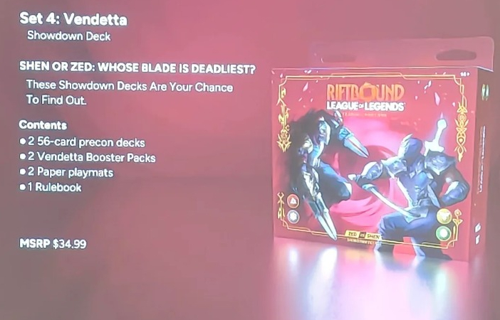 Y para terminar con Vendetta, los nuevos productos, 4 tapetes nuevos, 4 fundas nuevas y un nuevo starter doble de Shen y Zed.