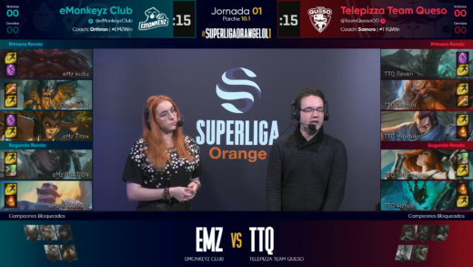 El siguiente encuentro de esta Jornada 1 en la SuperLiga Orange enfrentaba a eMonkeys Club y Telepizza Team Queso. La partida no podía empezar de una manera más curiosa, pues después del repaso de Mordekaiser a Ornn de la partida anterior, se vuelve a repetir el match-up, lo cual lleva al equipo de los monos a realizar un cambio de líneas asignadas, llevándose a la Cassiopea a top para permitir a su top laner aguantar frente al Yasuo de Miniduke. Les salió bien al principio, pues eso le proporcionó a DoubleAIM, jungla de eMonkeys, una primera sangre casi de regalo.