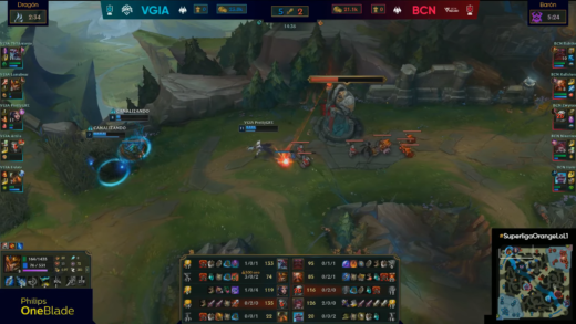 A partir de ese punto vemos ya como la diferencia de oro entre ambos equipos comienza a crecer, con casi 5k de diferencia a minuto 17, la máxima de la jornada a ese punto. Tres torres, dos inhibidores y dos dragones separaban a ambos equipos en ese punto, con una dupla Pretty-Lamabear que daba miedo. Es cierto que los esfuerzos de BCN fueron a neutralizar a Attila, lográndolo en parte, pero el precio a pagar fue muy elevado. A minuto 23, un ACE por parte de los gigantes les garantizó su primer Nashor, lo que se tradujo en dos inhibidores muy fáciles. El segundo Baron fue testimonial para cerrar una partida de libro.