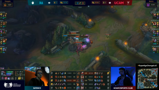 El que realmente fue el último partido del día debido a problemas técnicos, en la SuperLiga Orange fue el que enfrentó a UCAM Esports Club contra x6tence. El conjunto de Future partía absoluto favorito para las encuestas. Sin embargo, los aliens salieron a abducir a sus rivales con una partida alocada y con muchísimas jugadas dudosas por parte de ambos equipos.