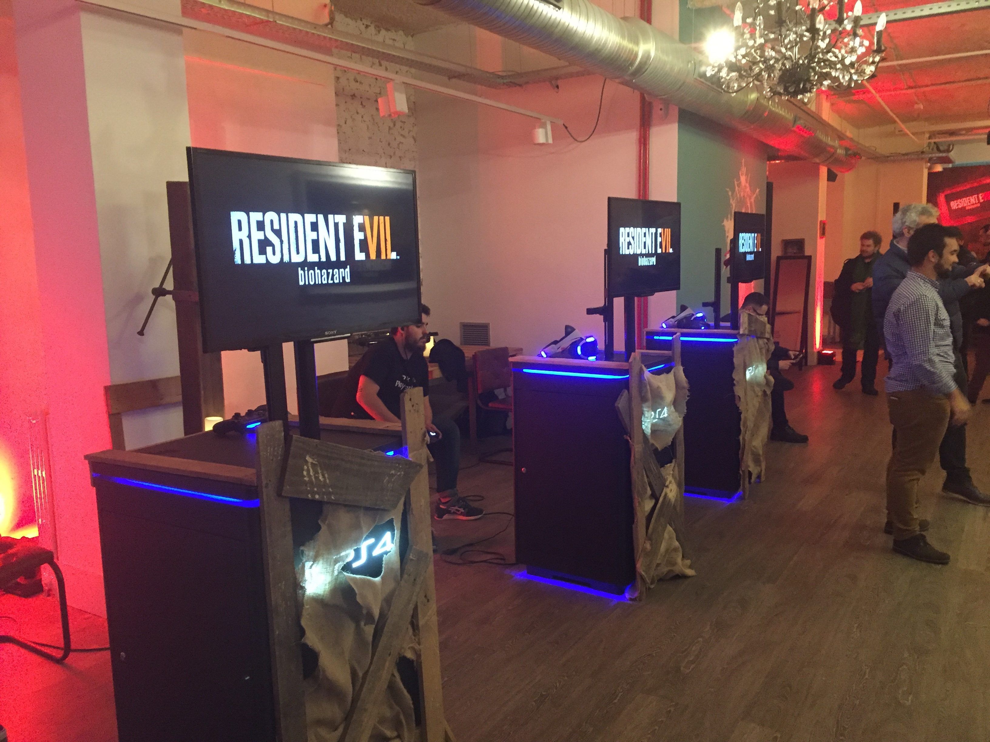 Por supuesto, no podía marcharme del evento sin probar Resident Evil 7 con las gafas Playstation VR. Así que tras resolver una serie de acertijos y pasear a la loca de Marguerite Baker en su silla de ruedas (no pude evitarlo), tome asiento, respiré hondo y me concentré en no quedar como un gallina delante de todos. Resultado: Objetivo conseguido, bueno, casi. Pero dejando de lado miedos y traumas, tuve la ocasión de poner a prueba a Resident Evil 7, y saqué varias conclusiones: En el aspecto jugable, recuerda mucho más a Alien Isolation que a PT u Outlast.