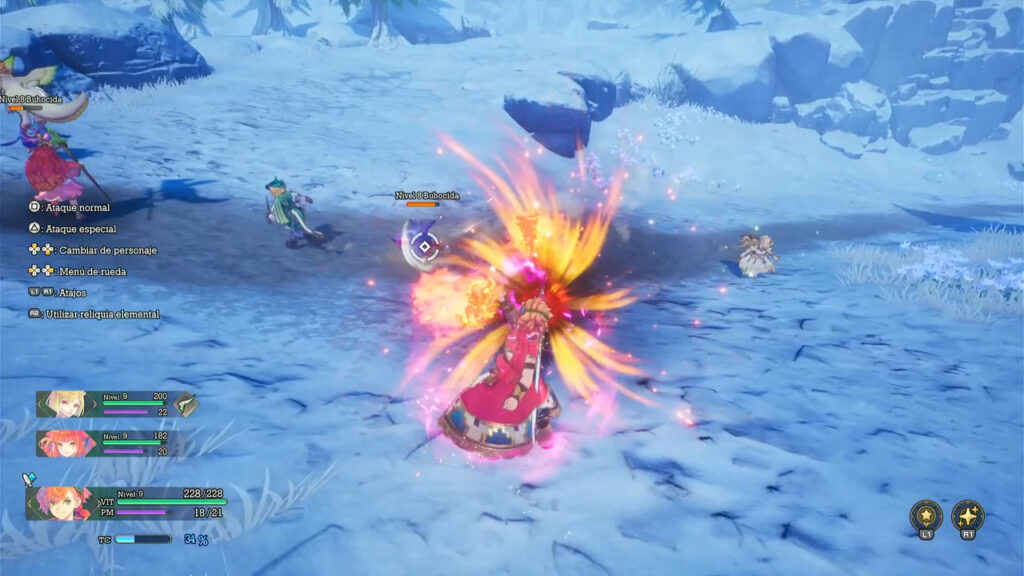 También nos suelen acompañar hasta dos personajes en estos momentos de acción, de los cuales uno lo manejaremos nosotros (aunque podemos cambiar rápidamente a quien controlar mediante la cruceta) mientras que el resto lo harán de manera automática vía IA que previamente podemos configurar. Ciertamente esta gestiona a los aliados de manera bastante eficiente (ya digo, los combates suelen ser un visto y no visto casi siempre), salvo si optamos por las dificultades más altas ya que no atina de la misma manera.