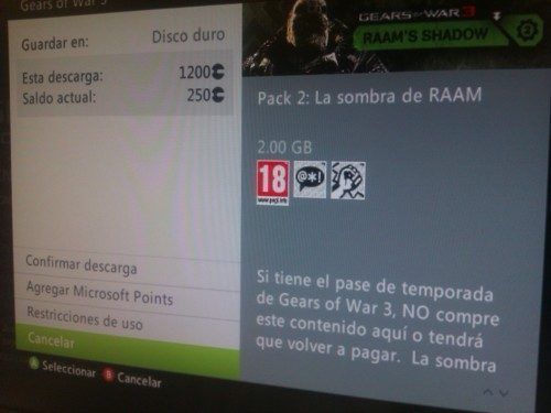 Como bien se prometió desde hace semanas, o desde hace días con nuestras primeras impresiones, el segundo DLC de Gears Of Wars 3 esta a disposición de todos… bueno… de todos no. Parece que existe algún tipo de problema con los usuarios poseedores del Season Pass que debería cubrir el coste de los cuatro primeros DLC, pero por algún motivo disponiendo de este Season Pass, el Live quiero hacernos pagar los 1200 MS Points. YA NO EXISTE EL PROBLEMA Y SE PUEDE DESCARGAR CON EL SEASON PASS