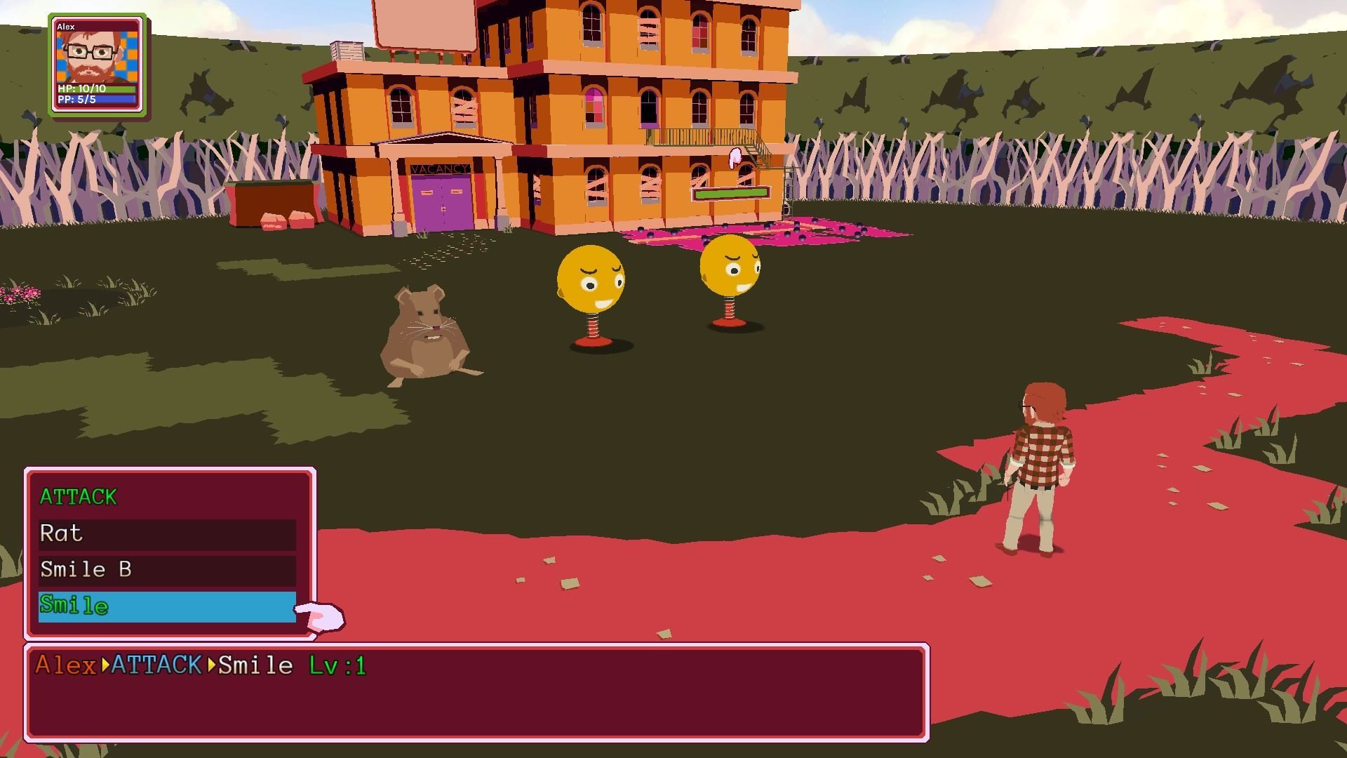 Reminiscente de Earthbound, YIIK: A Postmodern RPG da su pistoletazo de salida situándonos en un pueblo en el que parece reinar la armonía. Sus habitantes muetran su simpatía, el colorido inunda las calles y una banda sonora tan característica que me recuerda inevitablemente a las melodías del inconfundible Deadly Premonition. Quizás sea la calma antes de la tormenta, o quizás sea que los habitantes del pueblo no son conscientes del mal latente que amenaza sus vidas. En cualquier caso, lo que resulta innegable es que se trata de un juego muy simpático, a pesar de que su historia podría definirse como perturbadora, siendo generoso.
